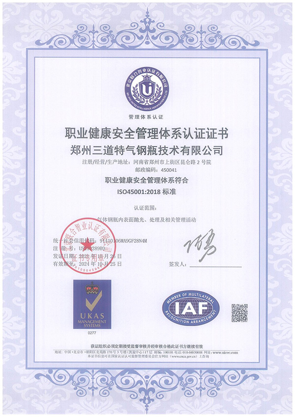 職業(yè)健康安全管理體系認(rèn)證證書(shū)